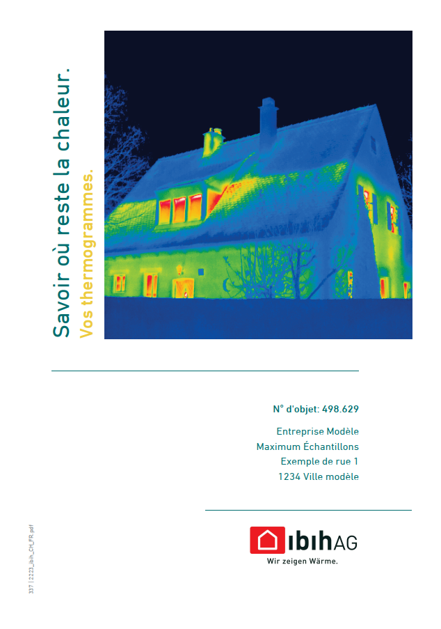 Contre 220 CHF (TVA comprise), vous recevrez au moins 6 clichés thermographiques de votre bâtiment, regroupés dans un dossier personnalisé qui mettra en évidence votre potentiel d'optimisation. Tout bâtiment chauffé peut être inscrit.